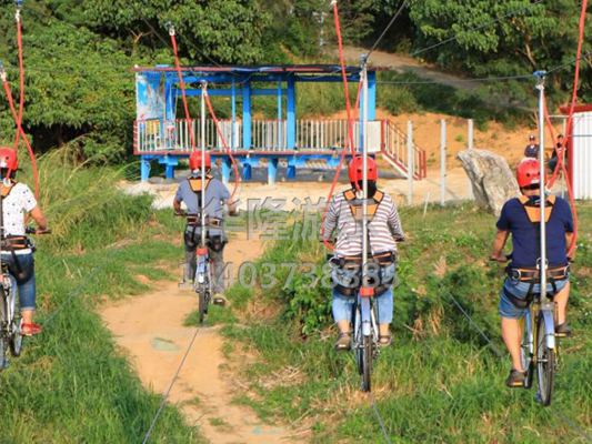 所屬類別:空中自行車 24小時咨詢熱線 13403738885空中自行車是一項具有一定驚險刺激的游樂項目,主要借助索道上的人騎單車的速度拉動你滑行,可以跨越草地、湖泊、河流、峽谷,張開雙臂耳邊呼吸的風聲籠罩全身,體會著剎那間的自由,充分享受其中的刺激和無窮的樂趣。